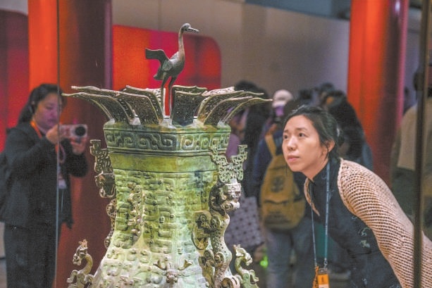 不雅众在莲鹤方壶前驻足。北京日报记者 武亦彬 摄