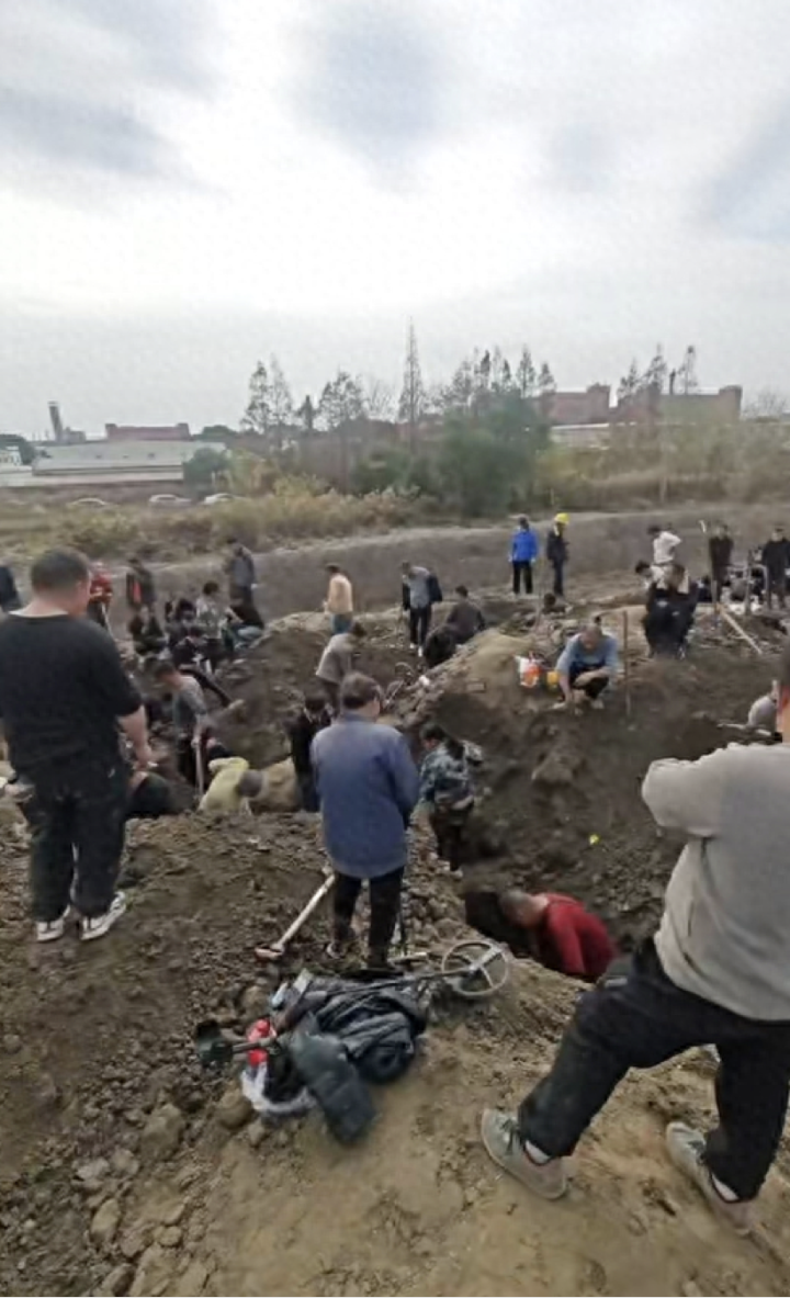 12月10日,上海市松江区车墩镇北闵路一处河谈阅兵工程工地因网传"挖出银元",诱骗上百名市民佩戴器具一夜扎堆挖掘!