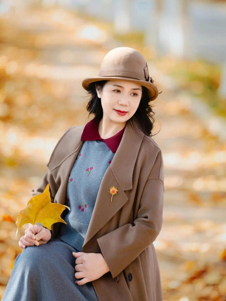 中年女士秋冬拍照念念要蔼然气质感,不错像大姨这么坐着拿落叶看着一边就很合适,动作轻松不刻意,微微侧头让脸部线条更轻柔,手里的落叶像一个小小点缀,画面干净恬逸,也很显气质,落叶的神采和衣着的神采撞在一齐时会更优雅气质顺眼。