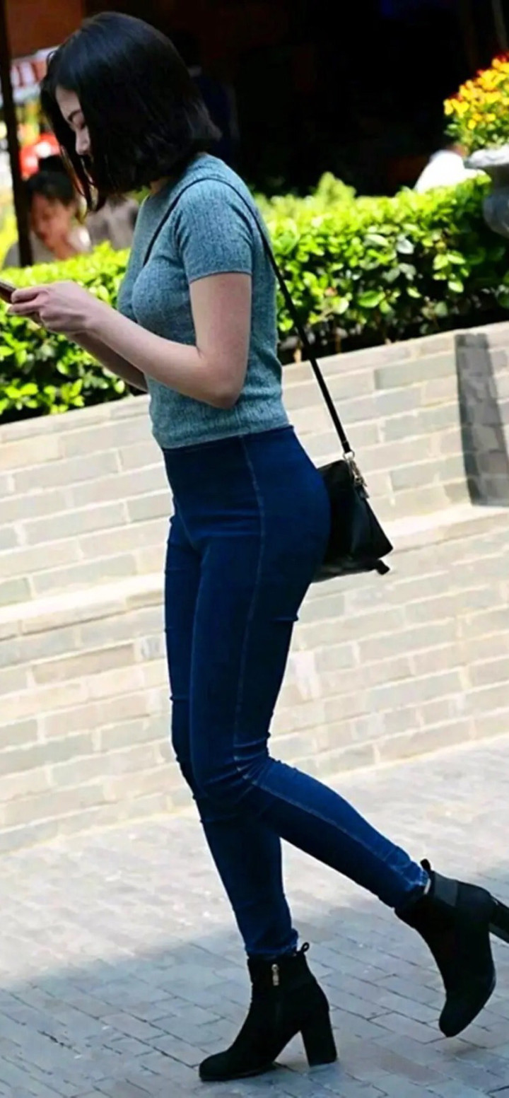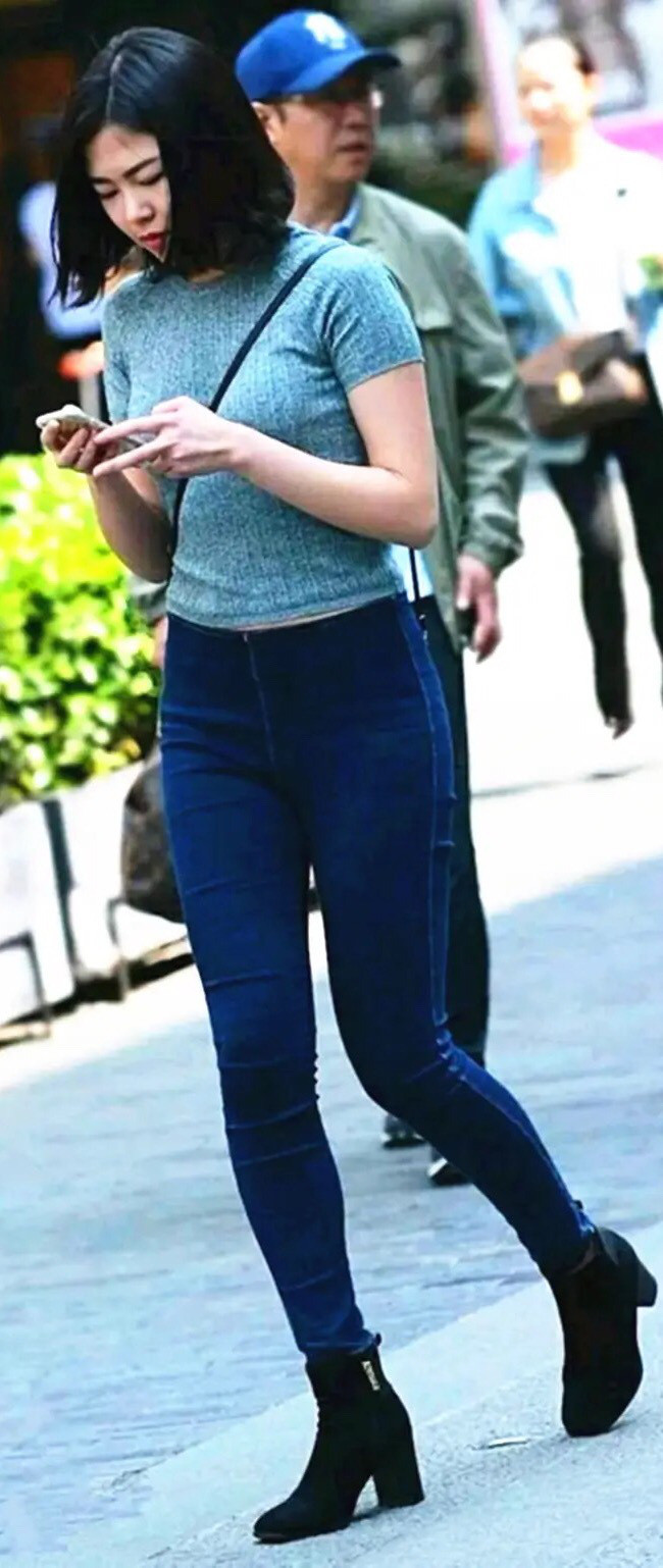 街拍: 牛仔裤勾画好意思女好体格, 大大王人女孩王人可爱穿牛仔裤百搭面子